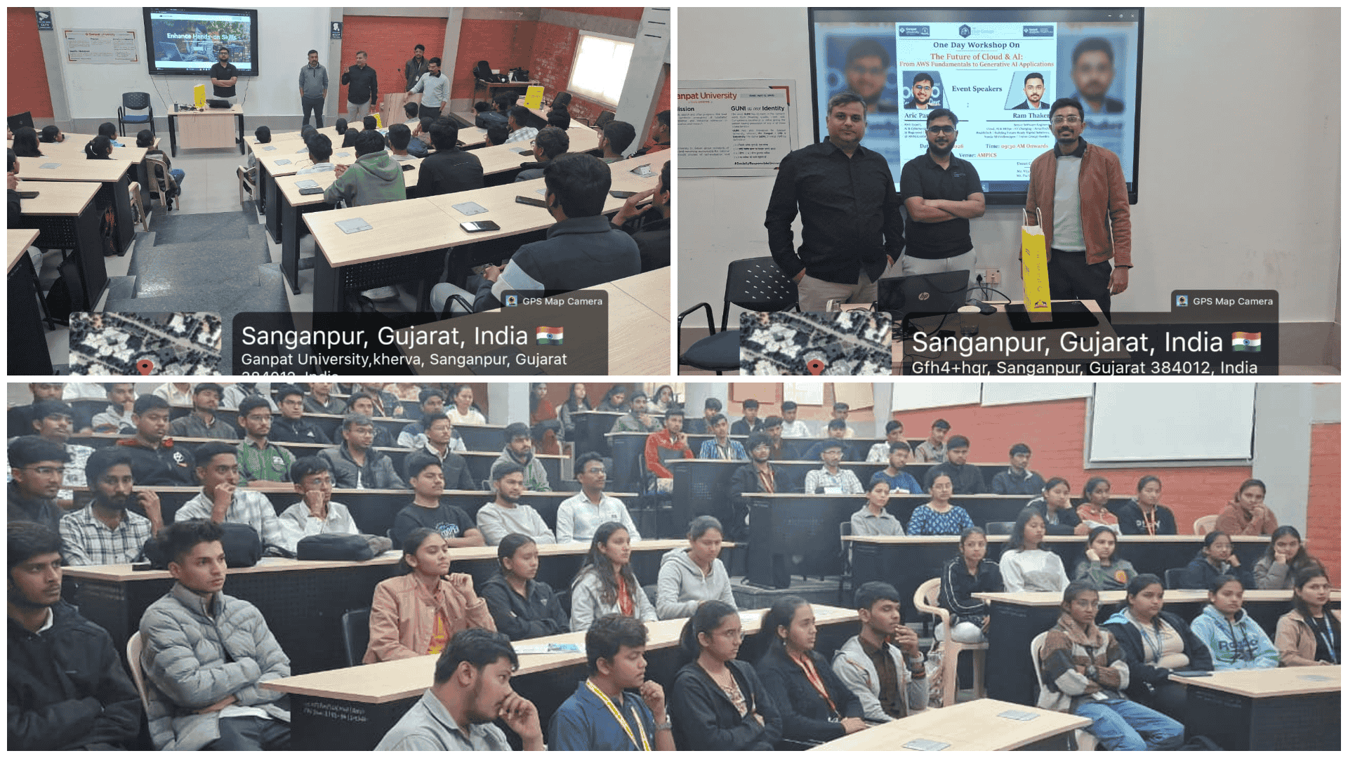 A.M. Patel Institute of Computer Studies (AMPICS), Ganpat University, organized a One Day Workshop on “The Future of Cloud & AI: From AWS Fundamentals to Generative AI Applications” on 30 January 2026 at 09:30 AM onwards. The workshop was conducted in collaboration with the Student Development Cell and AWS User Group Ahmedabad with the objective of exposing students to next-generation technologies transforming the global IT landscape.