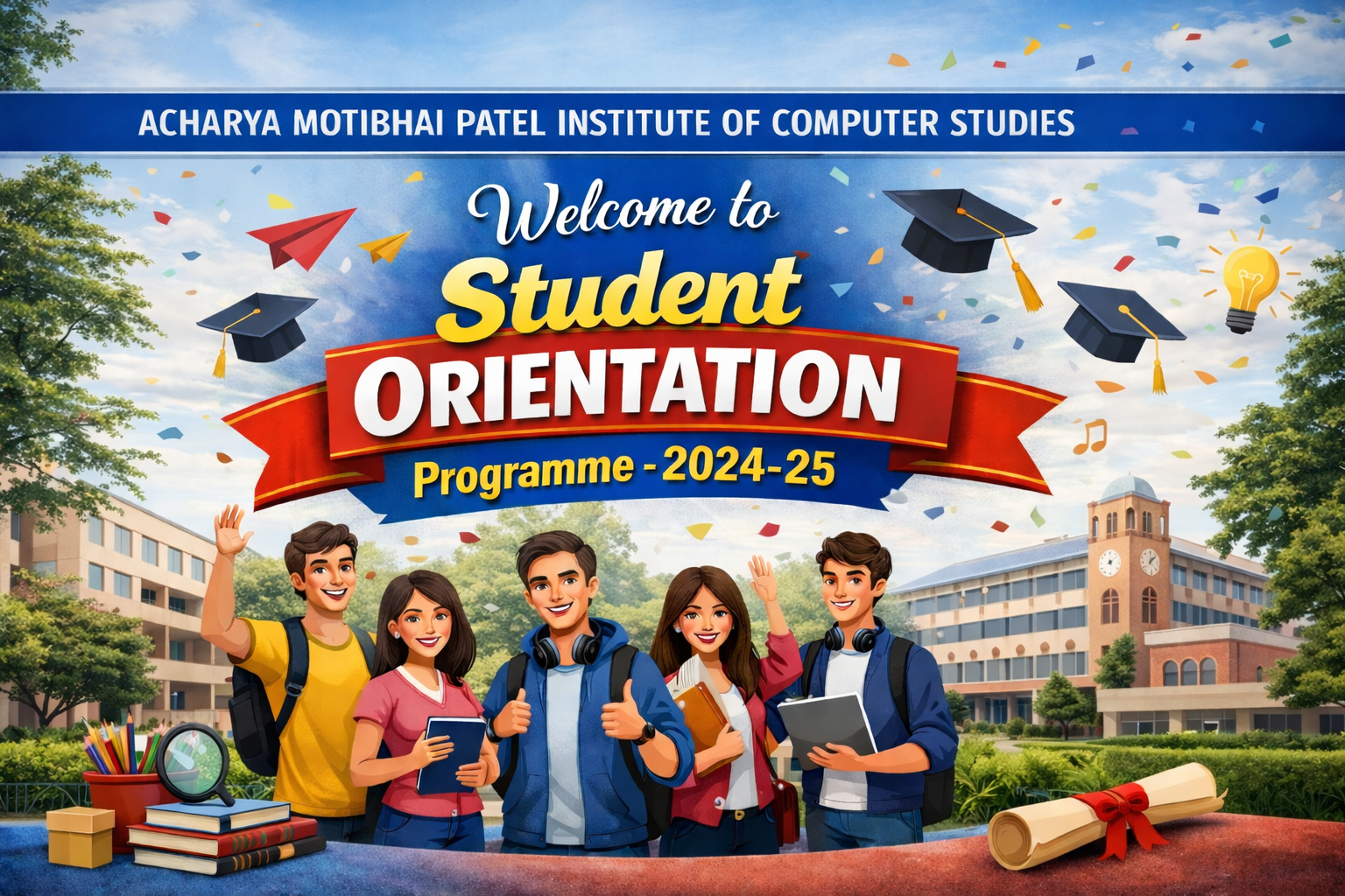 The orientation program for the newly admitted first-year students of MCA held on 29- August 2024 in the Seminar Hall, AMPICS, Ganpat University, Gujarat. The program was held in different session and campus visit in which all students